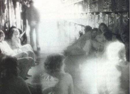 The figure leaning in the background was not seen by anyone sitting on the floor at this Toys R Us and wasn't captured on any security cameras SOURCE: OMGfacts.com
